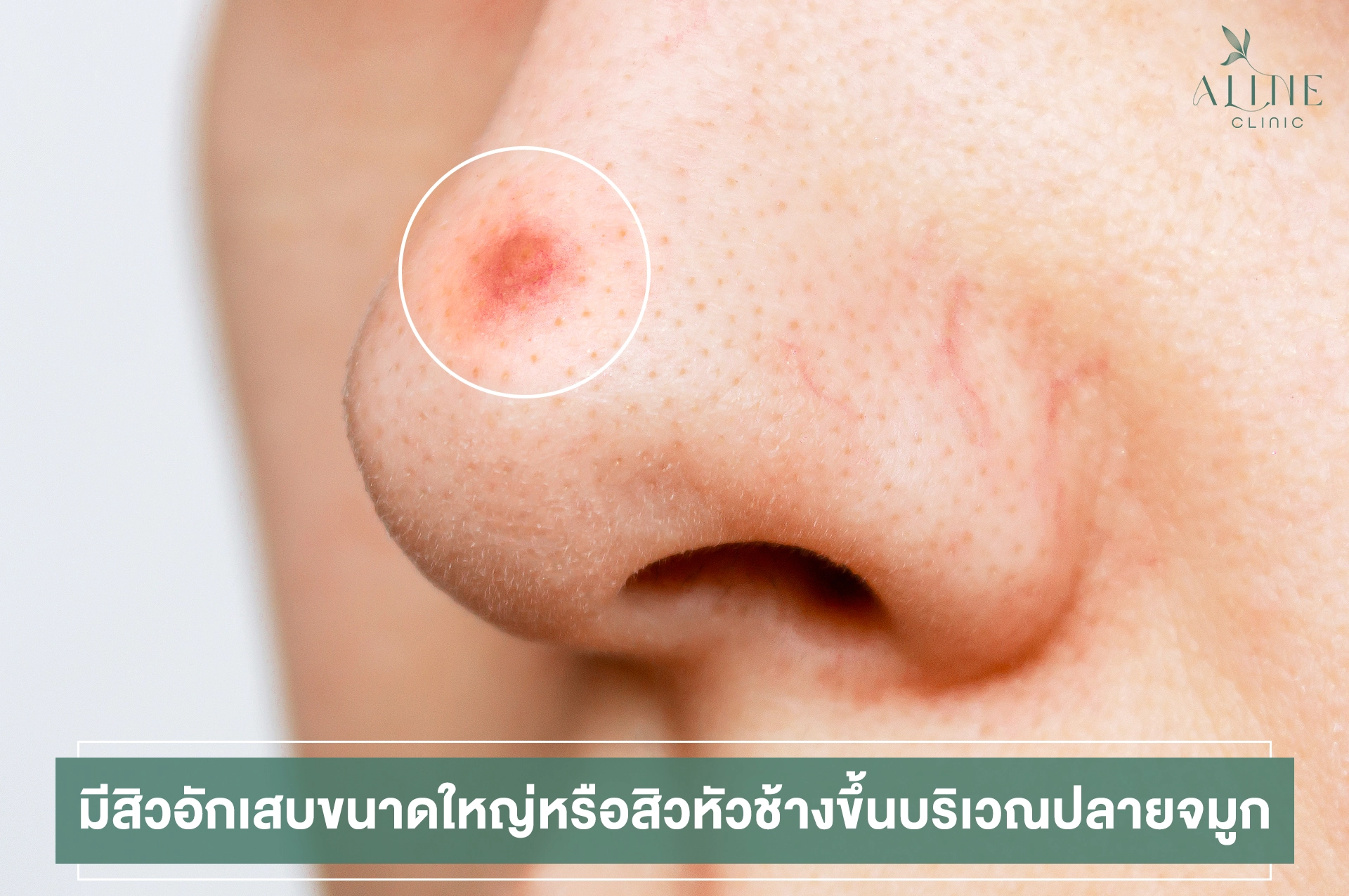 3. มีสิวอักเสบขนาดใหญ่หรือสิวหัวช้างขึ้นบริเวณปลายจมูก