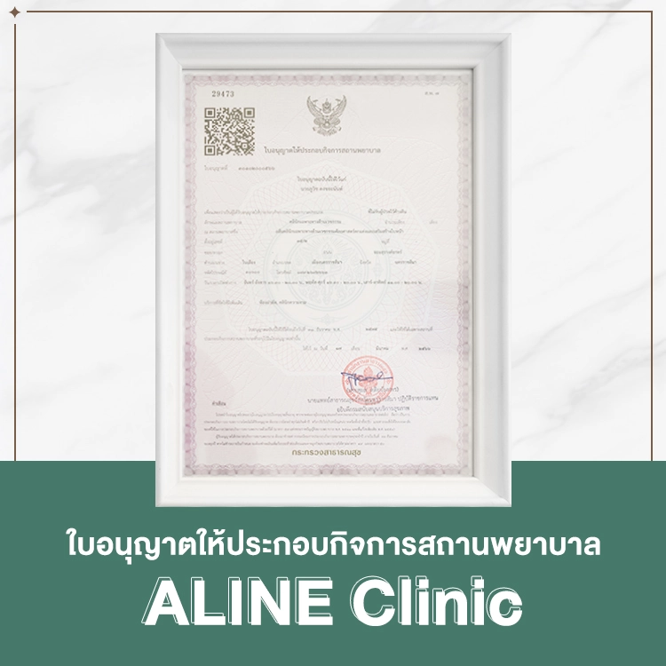 1. ALINE Clinic ขึ้นทะเบียนและขออนุญาตประกอบกิจการ และมีใบอนุญาตประกอบกิจการสถานพยาบาลอย่างถูกต้อง