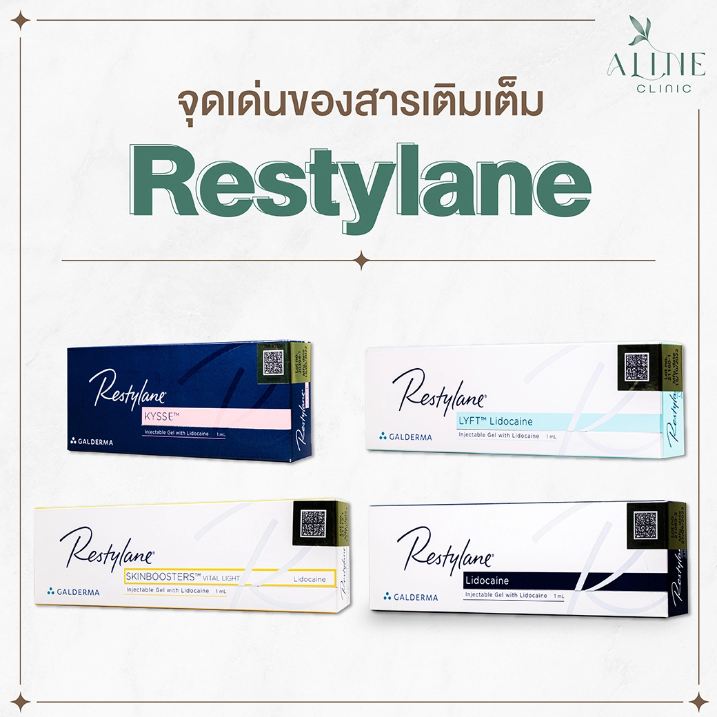 อย่างที่ทุกท่านทราบว่าที่ ALINE Clinic คุณหมอภูวิช คงชยะนันท์ เลือกใช้สารเติมเติม Restylane โดยสามารถอ่านเนื้อหาฉบับเต็มได้ที่ ทำความรู้จัก Restylane สารเติมเต็มแบรนด์ยอดนิยม สัญชาติสวีเดนที่คุณหมอภูวิชไว้วางใจ และในวันนี้น้องอลีนจะพาทุกท่านมาหาคำตอบว่าทำไมสารเติมเต็มยี่ห้อ Restylane จึงได้รับความนิยมเป็นอันดับต้น ๆ ในประเทศไทยกัน !! ทั้งคำถามที่ว่า Restylane ฉีดแล้วดีอย่างไร ? Restylane แต่ละรุ่นเหมาะกับการฉีดจุดไหนบ้าง ? เราไปติดตามรายละเอียดทั้งหมดในบทความนี้กันเลยค่ะ