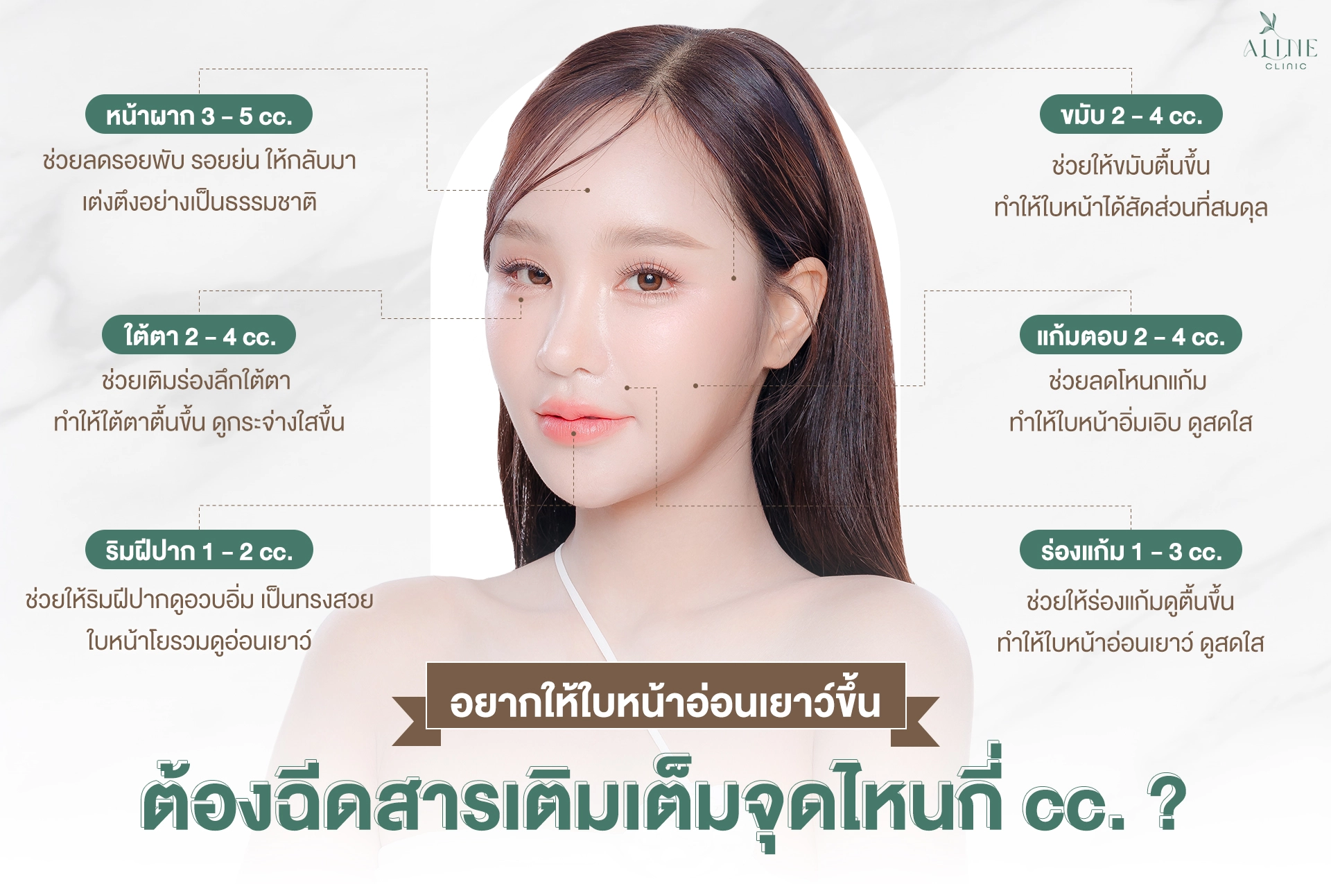 อยากให้ใบหน้าอ่อนเยาว์ขึ้น ต้องฉีดสารเติมเต็มจุดไหนกี่ cc. ?