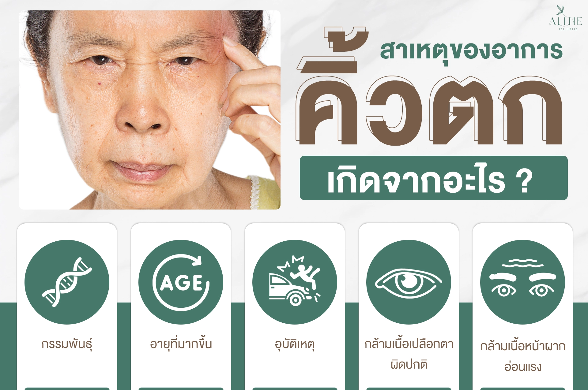 เมื่ออายุมากขึ้นคอลลาเจนภายในผิวหนังจะลดลง ผิวจึงมีความหย่อนคล้อย เช่นเดียวกับตำแหน่งของคิ้วก็จะตกลงมาเช่นกัน