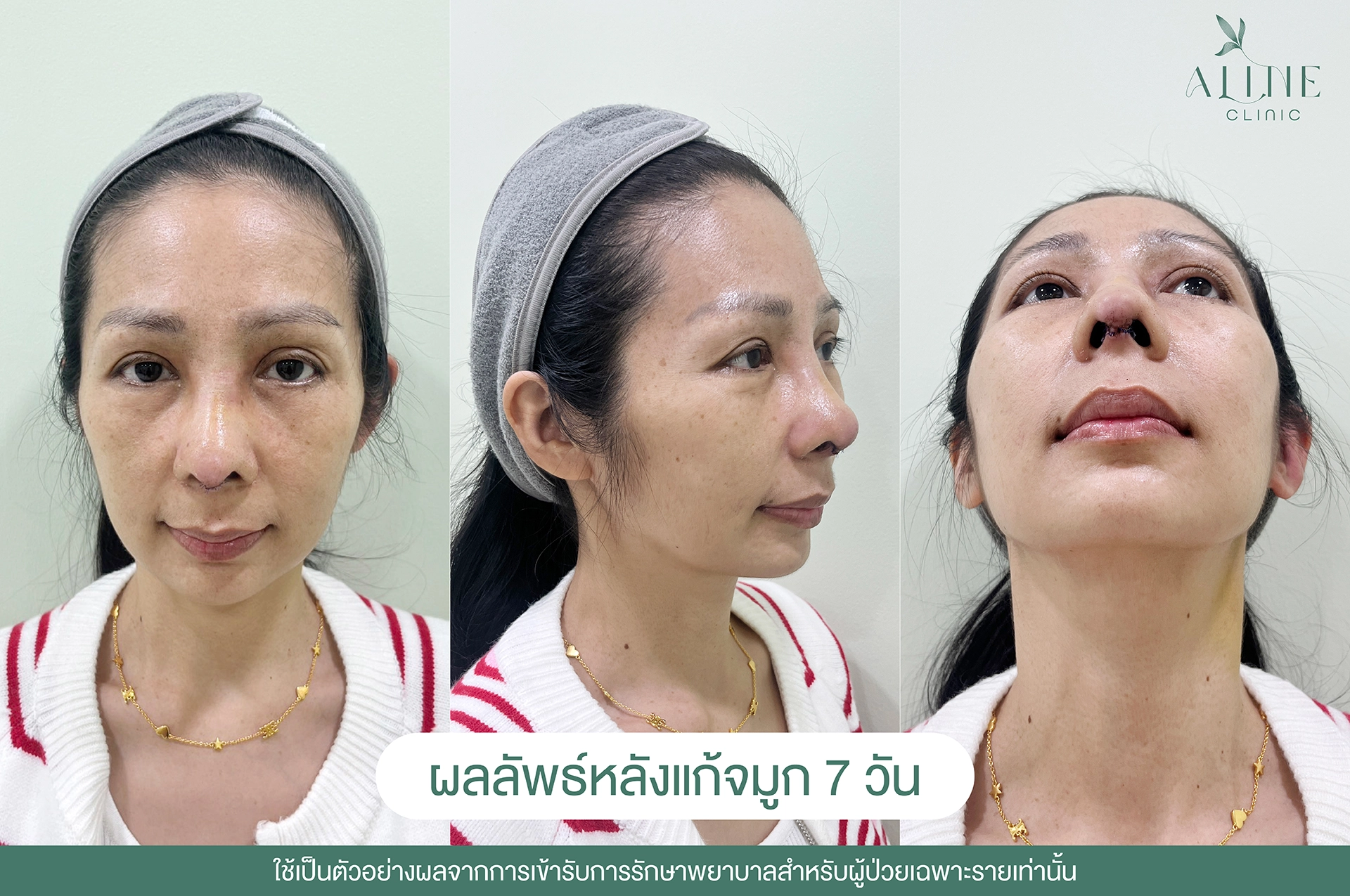 หลังจากแก้จมูกโอเพ่นเทคนิคไฮบริดได้ 7 วัน แอบกระซิบนิดนึงว่าในการแก้จมูกครั้งนี้ แพทเองก็ได้รีเควสทรงจมูกคุณต้าเหนิงไว้กับคุณหมอภูวิชด้วยนะคะ ต้องบอกว่าถึงแม้จมูกจะคงบวมช้ำอยู่นิดหน่อย แต่แพทพอใจทรงจมูกครั้งนี้มาก ไม่ว่าจะหันหน้ามุมไหนก็มั่นใจมากขึ้น ซึ่งนี่เป็นเพียงผลลัพธ์ 7 วันเท่านั้นนะคะ เดี๋ยวแพทจะพาไปดูตอนแก้จมูกครบ 1 เดือน 3 สัปดาห์กันต่อค่ะ