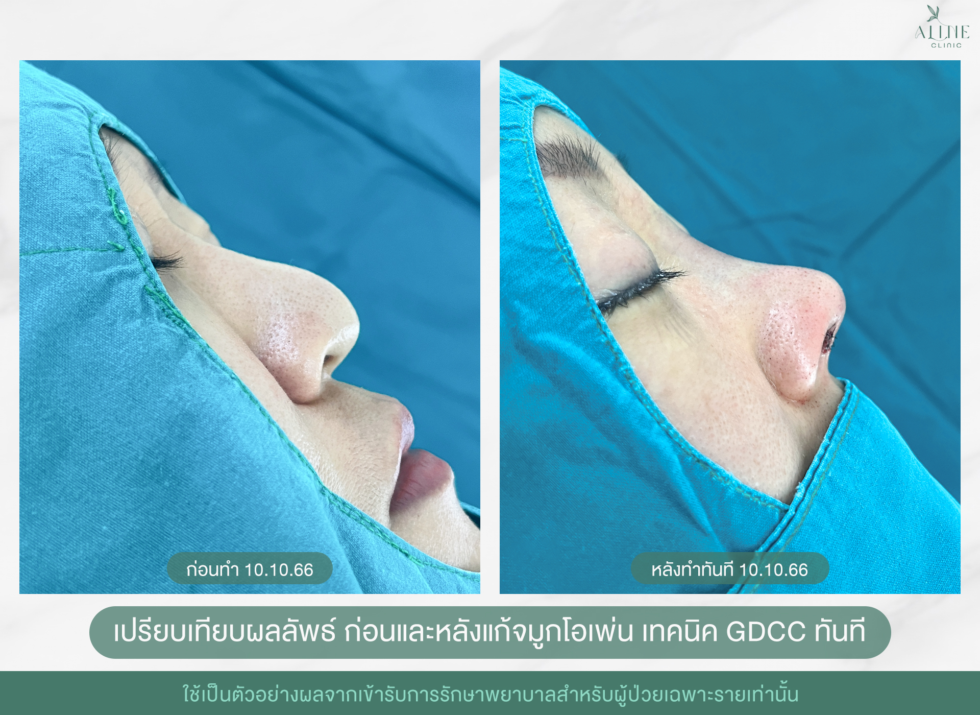 เปรียบเทียบผลลัพธ์ ก่อนและหลังแก้จมูกโอเพ่น เทคนิค GDCC ทันที