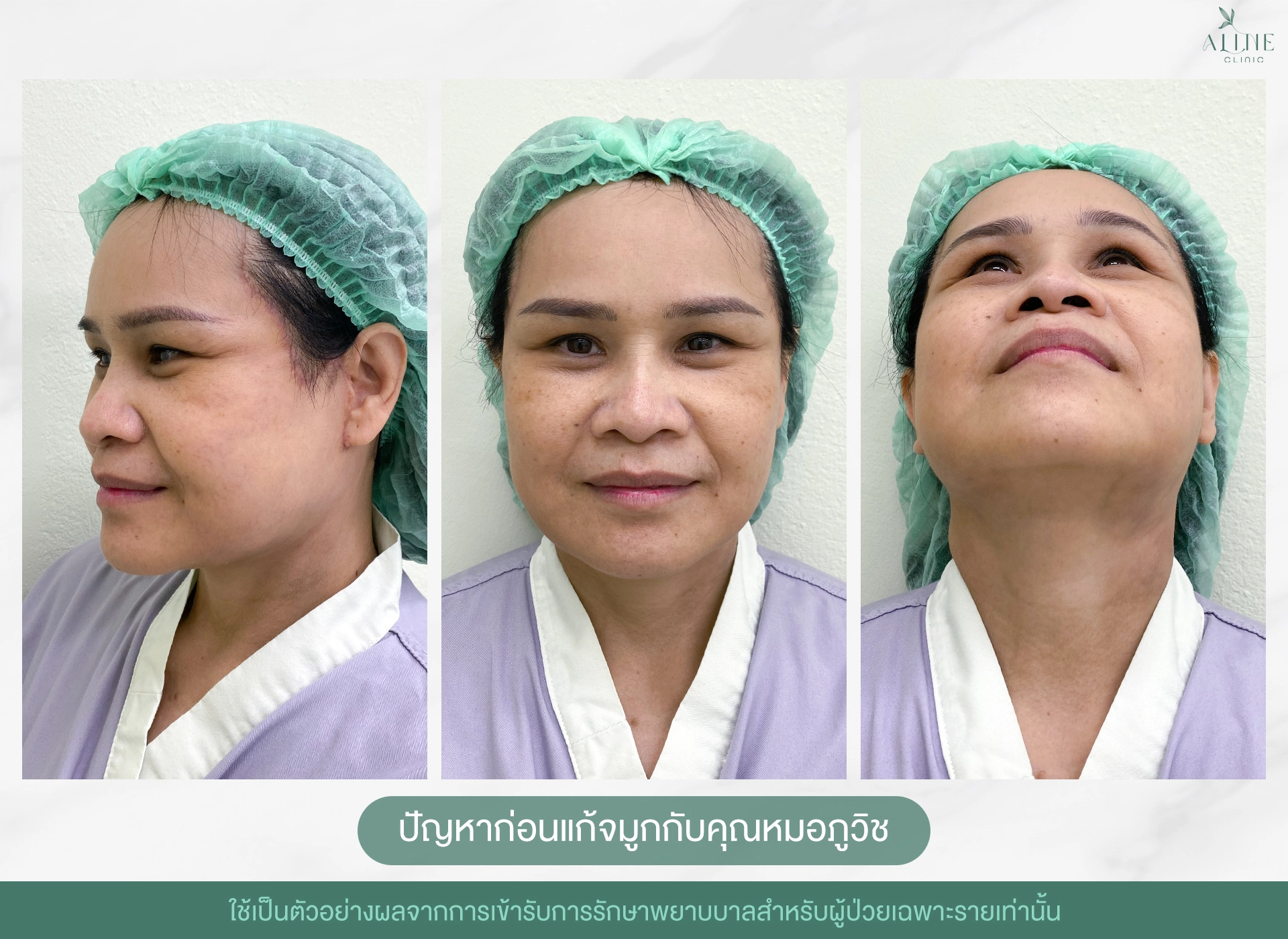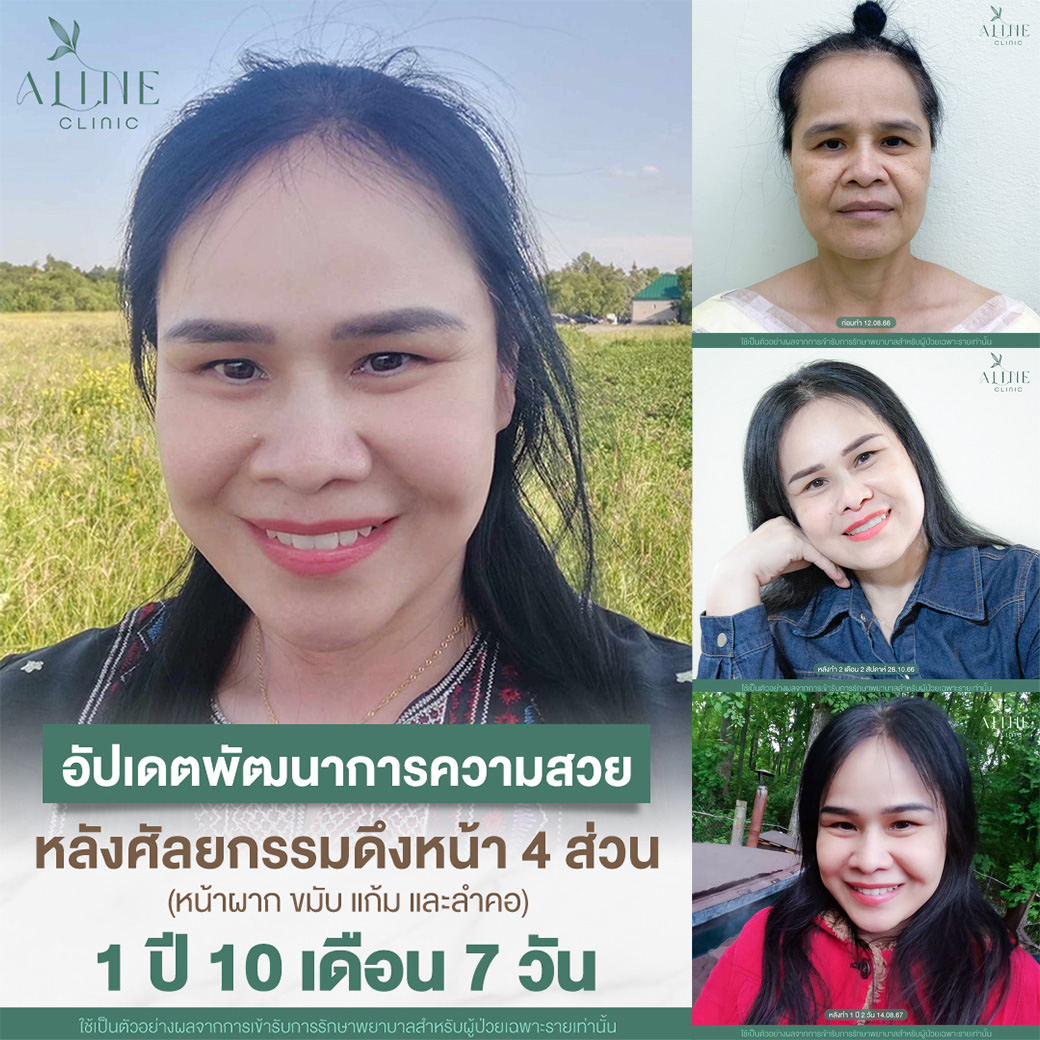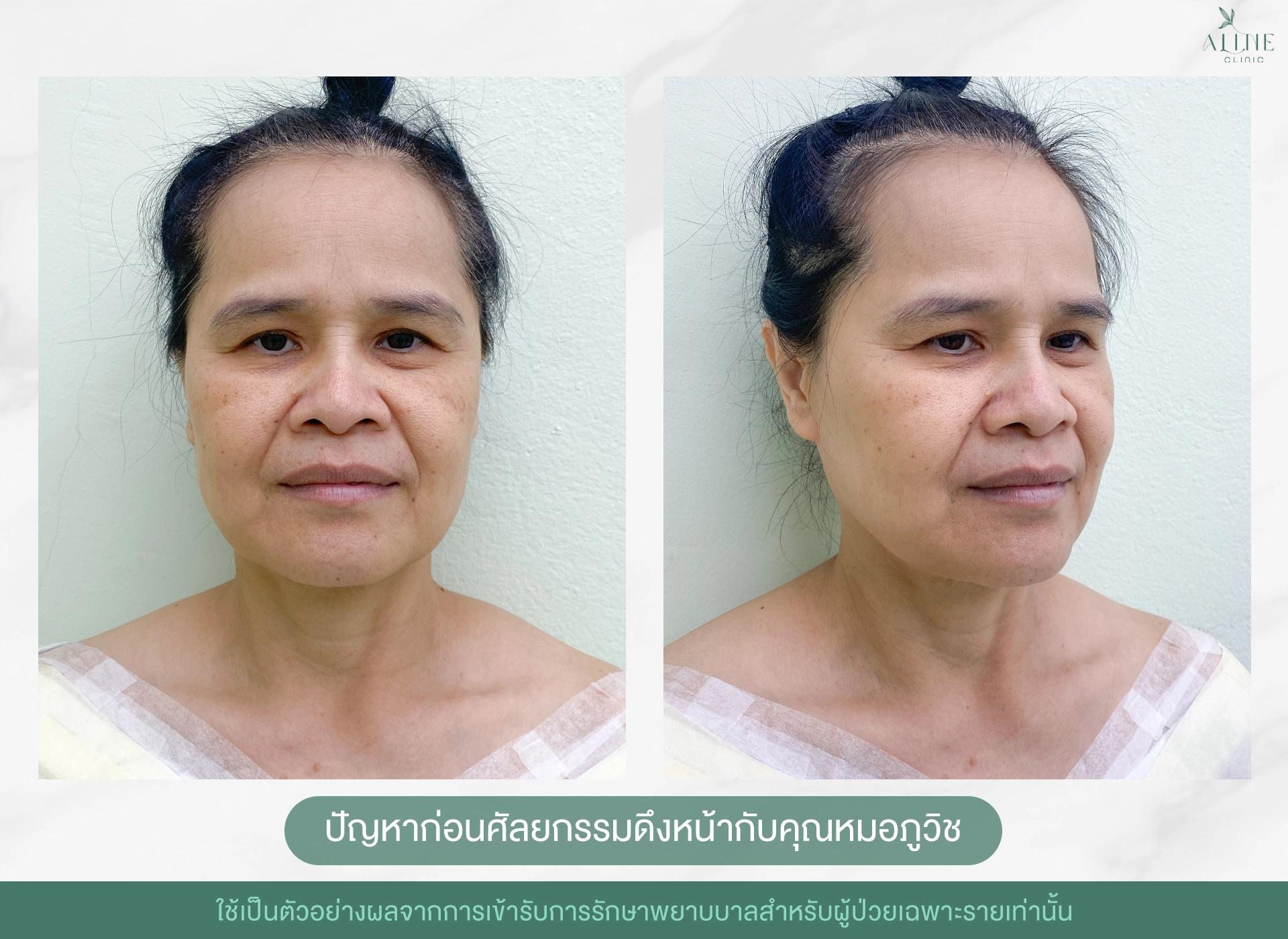 เหตุผลที่ตัดสินใจเลือกศัลยกรรมดึงหน้ากับคุณหมอภูวิชที่ ALINE Clinic โดยไม่รีรอ ก็เพราะว่าก่อนหน้านี้ได้ศึกษาข้อมูลของทางคลินิกมาเรียบร้อยแล้วค่ะ ทั้งเอาข้อมูลต่าง ๆ ไปเปรียบเทียบกับเทคนิคการดึงหน้าของคลินิกอื่น ๆ แต่มนัสนันท์ก็เห็นว่าเทคนิคการดึงหน้าของคุณหมอภูวิช เป็นการดึงหน้าถึงชั้นลึกที่สามารถคงผลลัพธ์ให้ใบหน้าแลดูอ่อนเยาว์ขึ้นประมาณ 10 ปี อีกทั้งยังมั่นใจมากขึ้นไปอีก เพราะคุณหมอเป็นแพทย์เฉพาะทางด้านศัลยศาสตร์ตกแต่งและเสริมสร้างใบหน้าที่มีประสบการณ์ด้านการศัลยกรรมและเสริมความงามมานาน มนัสนันท์ไม่กังวลว่าจะมีสิ่งไม่ดีเกิดขึ้นเลยค่ะ ส่วนผลลัพธ์หลังศัลยกรรมดึงหน้าจะเป็นยังไง ไปชมกันเลยค่ะ