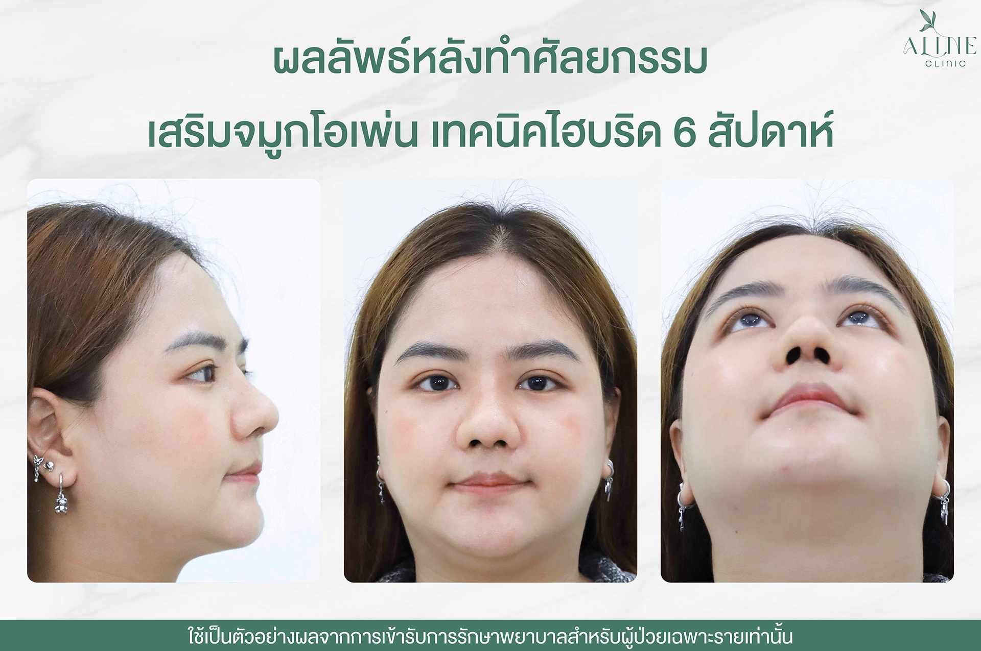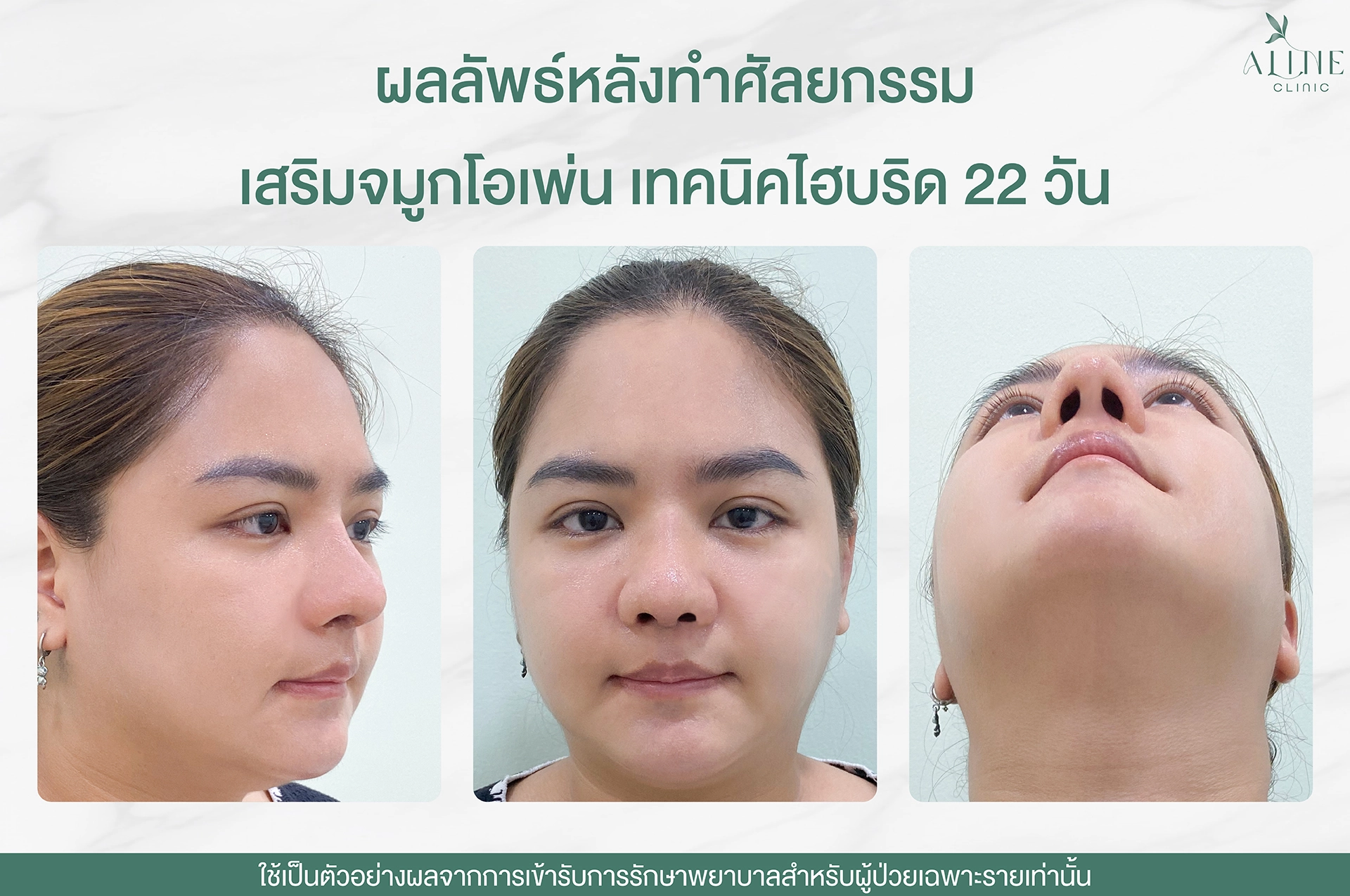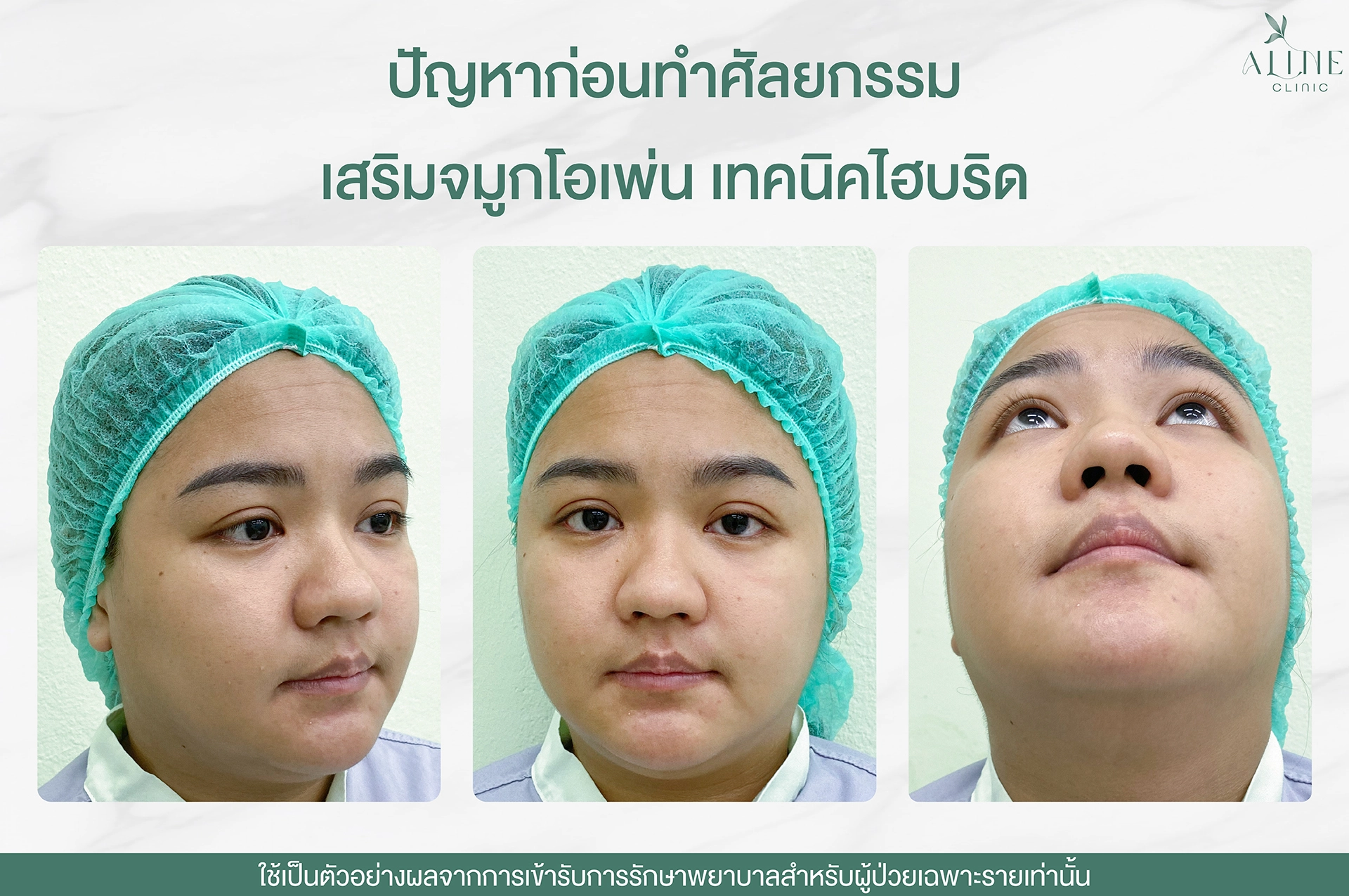 ป่านเลยตัดสินใจเข้ามาปรึกษาคุณหมอภูวิช ที่ ALINE Clinic เลยค่ะ คุณหมอภูวิชให้คำปรึกษาดีมาก ๆ เลย ป่านประทับใจมากค่ะ นอกจากปัญหาจมูกชมพู่ของป่านที่เกิดจากปัญหาเนื้อจมูกตรงปลายจมูกเยอะแล้ว ป่านยังมีปัญหาผนังกั้นจมูกเอียงด้วยนะคะ พอได้ฟังแล้วก็อดเป็นกังวลไม่ได้เลย เพราะอย่างที่ป่านได้เล่าไปว่านี่คือการทำศัลยกรรมครั้งแรกของป่านค่ะ แต่ป่านก็ใจชื้นขึ้น สบายใจขึ้น และความกังวลก็น้อยลงทันทีที่คุณหมอภูวิชแจ้งป่านว่า คุณหมอแก้ไขปัญหาจมูกที่ป่านมีได้ทั้งหมด ทั้งปัญหาปลายจมูกโตเป็นลูกชมพู่ และปัญหาผนังกั้นจมูกเอียงเลยค่ะ โดยใช้การเสริมจมูกแบบโอเพ่น เทคนิคไฮบริด ซึ่งการเสริมจมูกเทคนิคนี้ จะเป็นการแก้ไขที่โครงสร้างจมูกเลยนะคะ ทุกปัญหาที่ป่านมีจึงได้รับการแก้ไขที่ต้นตอของปัญหา ถ้าเพื่อน ๆ คนไหนอยากรู้จักเทคนิคที่คุณหมอภูวิชใช้ในการเสริมจมูกให้ป่าน สามารถเข้าไปอ่านบทความเพิ่มเติมเกี่ยวกับการทำศัลยกรรมเสริมจมูกโอเพ่น เทคนิคไฮบริด ได้ที่นี่เลยนะคะ ทำความรู้จักการเสริมจมูกโอเพ่นเทคนิคไฮบริด ปลายไร้ซิลิโคน ไร้กังวลปัญหาปลายทะลุ