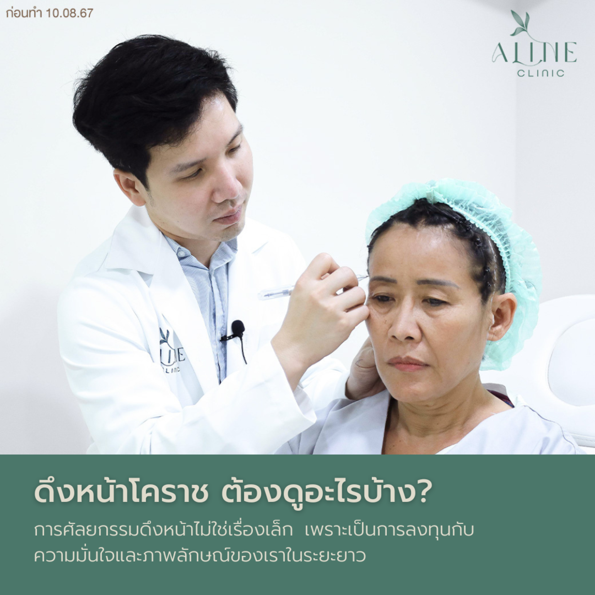 ที่ ALINE CLINIC เรามีทีมศัลยแพทย์เฉพาะทางด้านการดึงหน้า พร้อมเทคโนโลยีและเทคนิคที่ทันสมัยที่สุดในโคราช ดูแลตั้งแต่ประเมินเคสจนถึงหลังผ่าตัดแบบครบวงจร