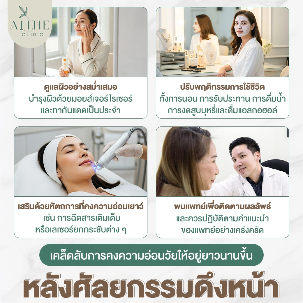 ผลลัพธ์ของการศัลยกรรมดึงหน้าไม่ได้ขึ้นอยู่กับฝีมือแพทย์เพียงอย่างเดียว แต่ยังเกี่ยวข้องกับเทคนิคที่เลือกใช้ การดูแลหลังผ่าตัด และวิถีชีวิตประจำวันของคุณ การเลือกคลินิกที่มีมาตรฐานสูง ศัลยแพทย์เฉพาะทาง และการดูแลตัวเองอย่างต่อเนื่อง จะช่วยให้คุณคงความอ่อนเยาว์ได้ยาวนาน คุ้มค่ากับการลงทุนเพื่อความงามและความมั่นใจของคุณ