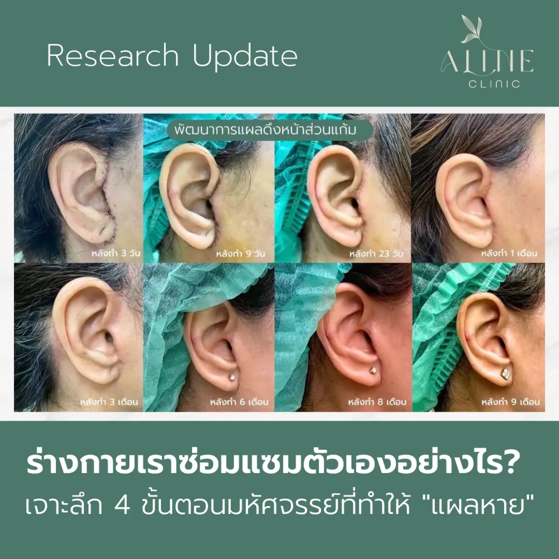 ล่าสุดมีงานวิจัยที่น่าสนใจเกี่ยวกับ "กลไกโมเลกุลของการสมานแผล (Molecular mechanisms of skin wound healing)" ที่ทำให้เราเห็นว่า ร่างกายมนุษย์นั้นฉลาดและน่าทึ่งกว่าที่เราคิด วันนี้ ALINE Clinic จะพาคุณไปทัวร์โรงงานซ่อมแซมร่างกาย เพื่อให้คุณเข้าใจว่า "กว่าแผลจะหาย" ร่างกายต้องผ่าน 4 ด่านหินอะไรบ้าง และเราจะช่วยร่างกายให้ทำงานดีขึ้นได้อย่างไร