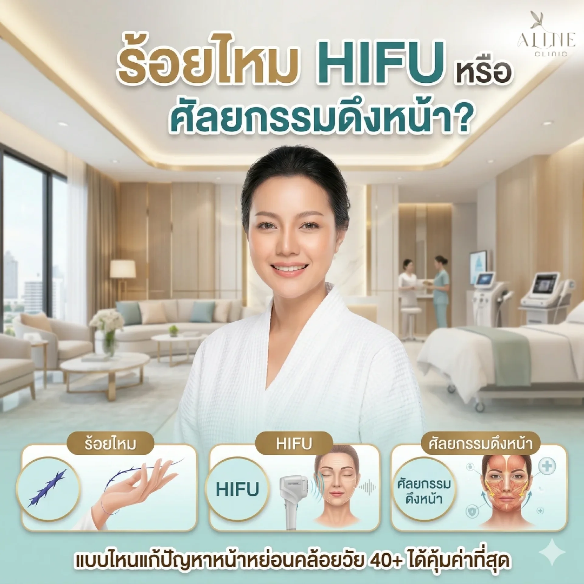 ร้อยไหม HIFU หรือ ศัลยกรรมดึงหน้า? แบบไหนแก้ปัญหาหน้าหย่อนคล้อยวัย 40+ ได้คุ้มค่าที่สุด