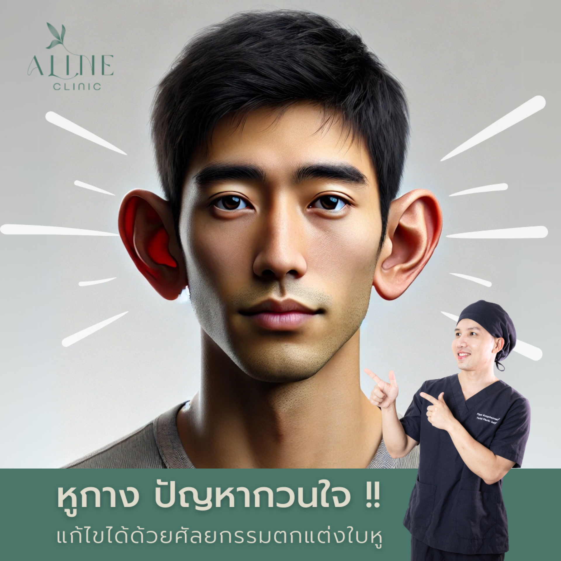ปัญหา: ขอบหูโค้งผิดรูป ส่งผลให้ใบหูดูแบะออกมากกว่าปกติ